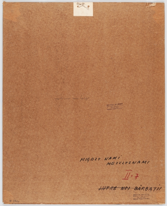 reverse, bottom right corner: MIĘDZY NAMI / MĘŻCZYZNAMI / II-7 / INTRE NOI BARBATII (crossed out)