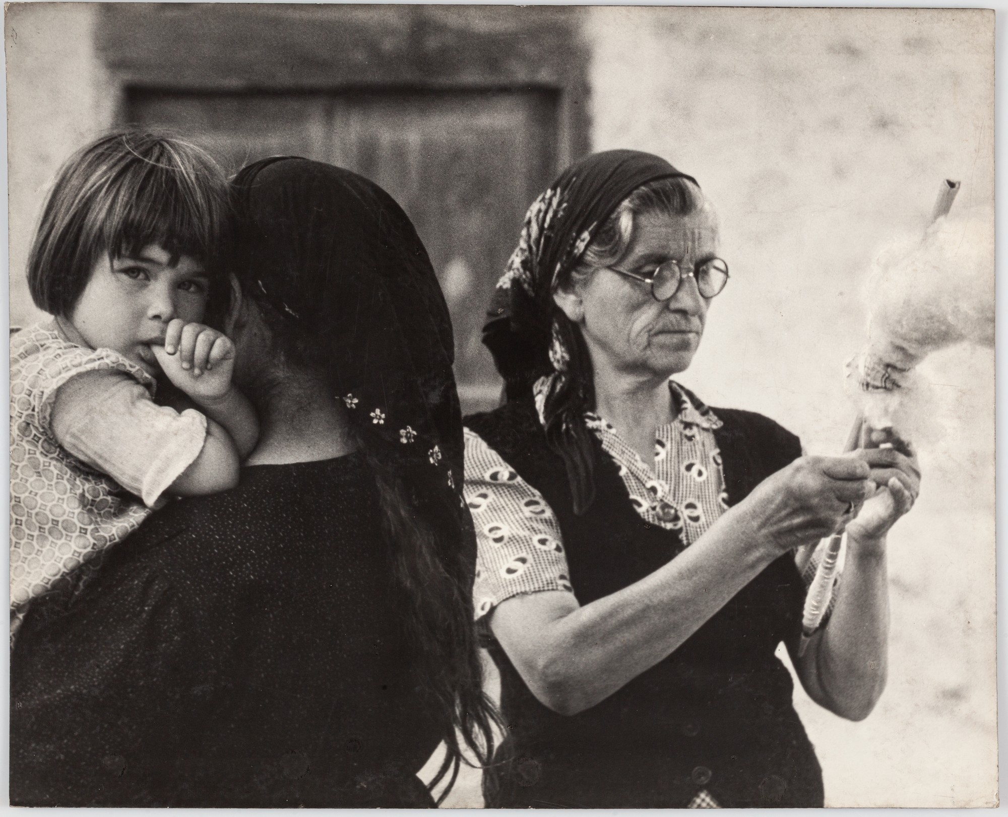 keywords: scarf  |  child  |  Polish photography  |  woman  |  glasses  |  child portrait  |  female portrait  |  spinning (activity)  |  Polish art  |  contemporary art  |  spindle