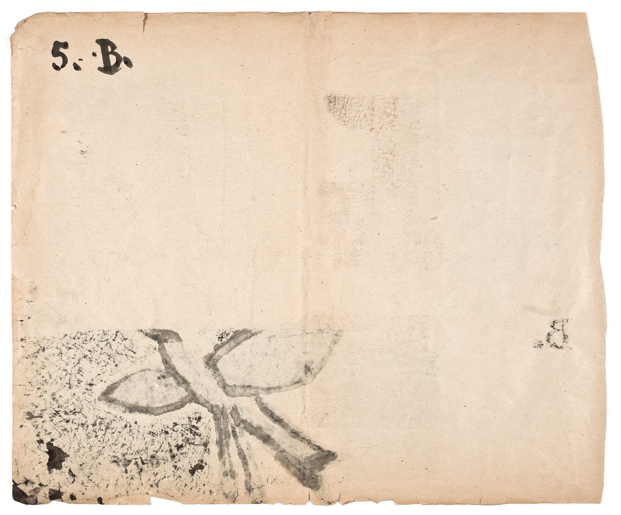 tuszem, pod fotografią, l. pośr. : B.; na odwrocie, tuszem, l.g.: 5. B.