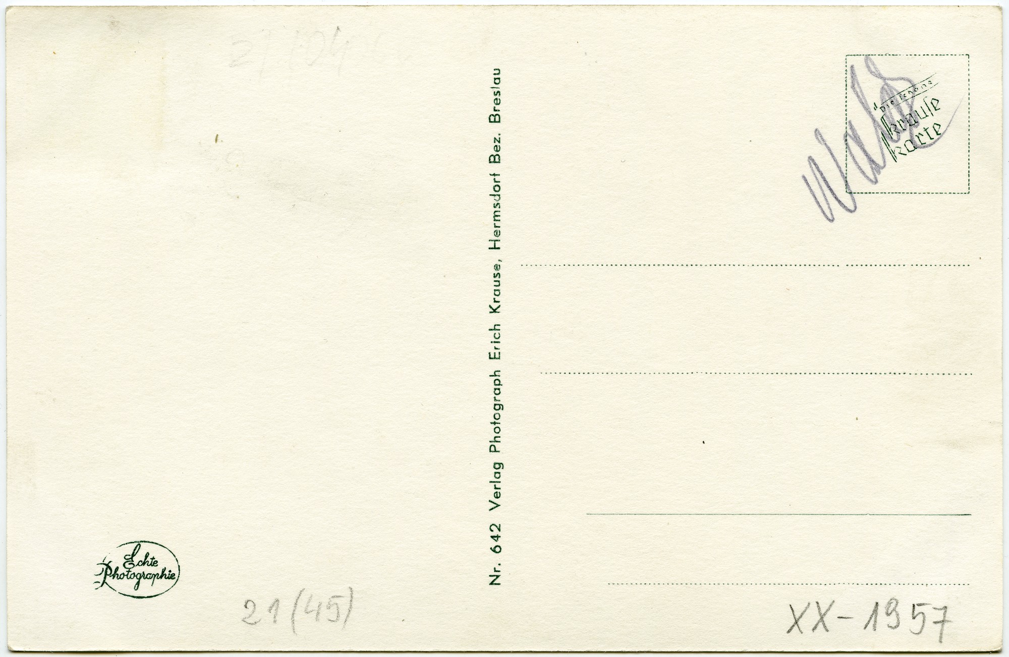 rewers: Nr. 642 Verlag Photograph Erich Krause, Hermsdorf Bez. Breslau; w miejscu przeznaczonym na znaczek znak firmy
