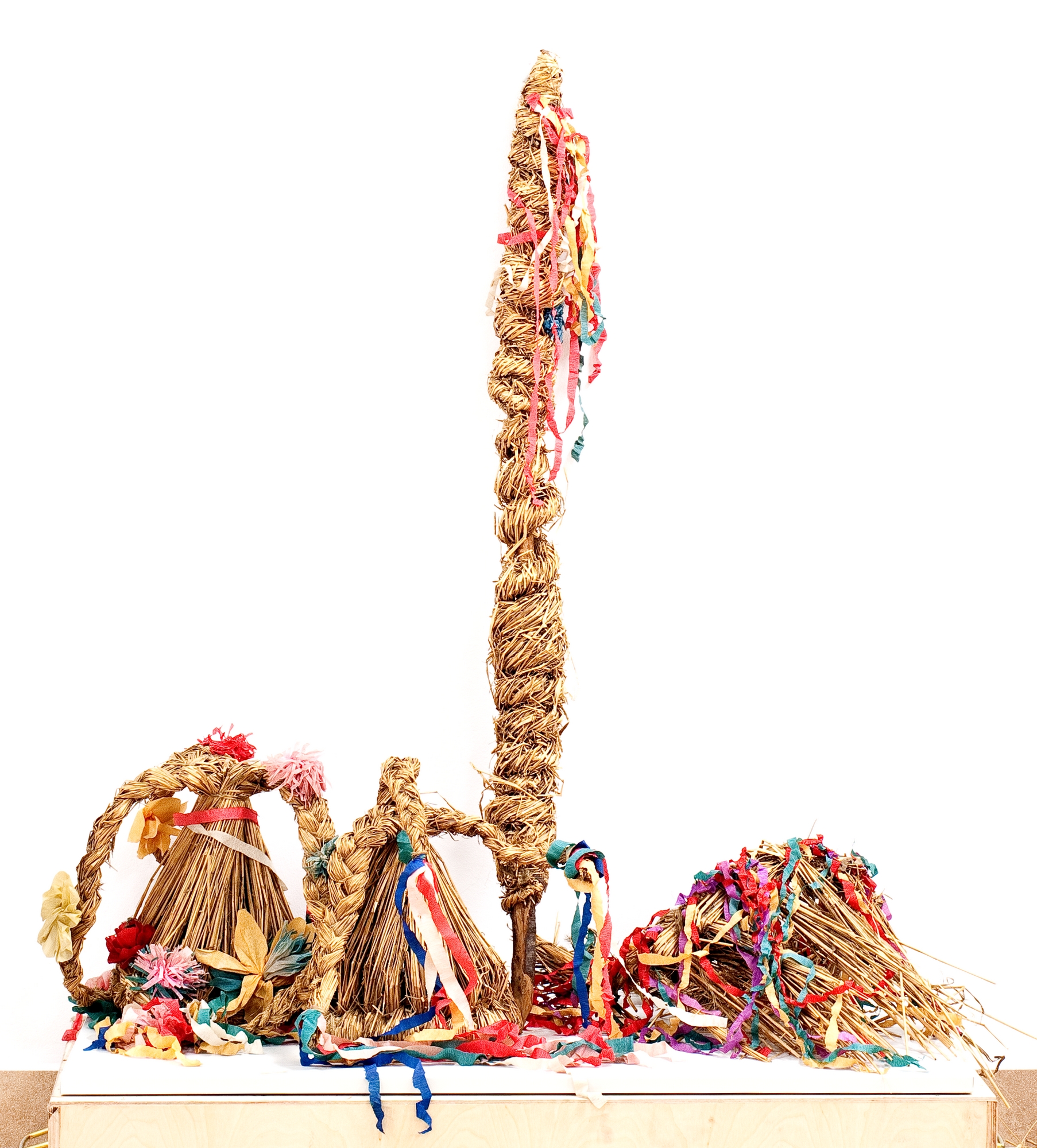 materiał: słoma, gałązka, bibuła, drut stalowy, gumka, sznurek