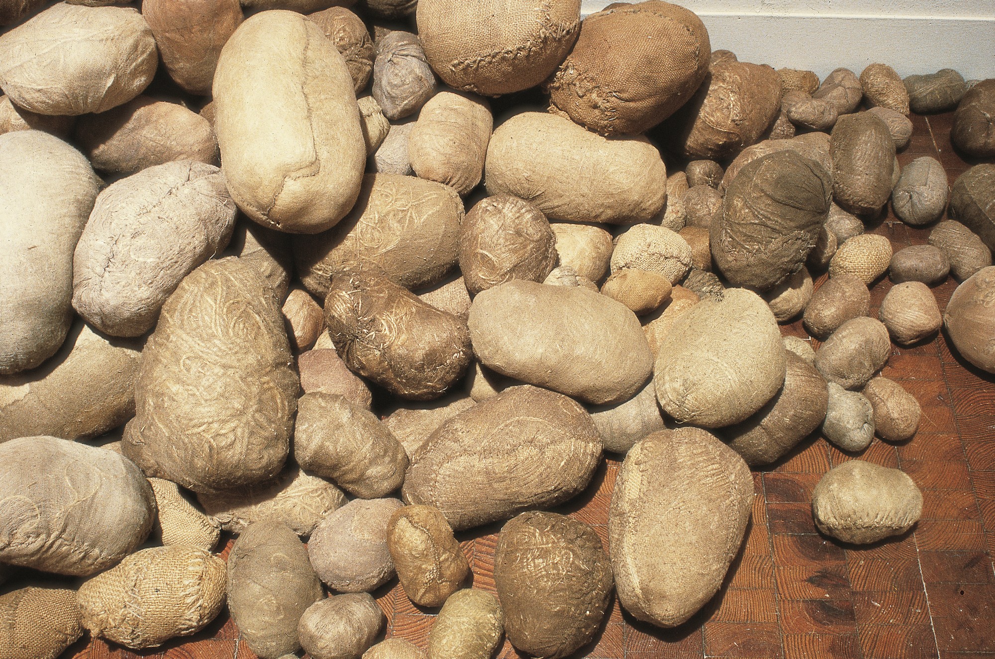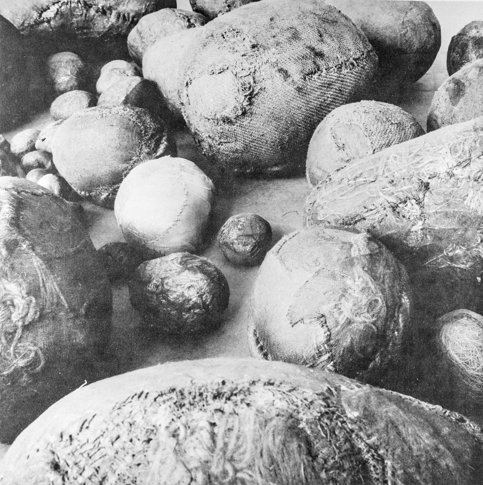 Pracą, która bezpośrednio zapowiadała Embriologię, były pochodzące z 1973 roku i zestawione w większy cykl Głowy. Choć w odróżnieniu na przykład od Tłumu nie mają one rangi dzieła flagowego, to uznawane są za ważne dzieło przejściowe (Inglot, J., 2004, s. 72). Wyznaczają przede wszystkim nowy kierunek zainteresowań artystki, krążących wokół pamięci kolektywnej - wspólnotowego doświadczania i przepracowywania historycznych opresji. Głowy szczególnie wyraźnie korespondują z Embriologią na poziomie rozwiązań formalnych. Jest to nie tylko jedna z pierwszych prac, w której artystka znacząco zredukowała gabaryty obiektów, ale także zastosowała charakterystyczne dla niej materiały: worki jutowe, sznurki konopne, bawełnę i gazę. W Embriologii ten zestaw materiałów z odzysku wzbogaci o nylon oraz lniane i konopne pakuły. Zbieżne będą także rozwiązania techniczne obu realizacji. Zarówno w Głowach, jak i w największych elementach Embriologii zastosowany został metalowy szkielet, obleczony tekstylnymi workami, które wypełniono sznurkami, szmatkami i gazą, a następnie zszyto grubym, wyraźnym, niedoskonałym ściegiem. Ostatnim podobieństwem jest sama forma powielająca kształty występujące w naturze. W obu realizacjach będą to owalne, nieidealne, szorstkie w fakturze, miękkie bryły.