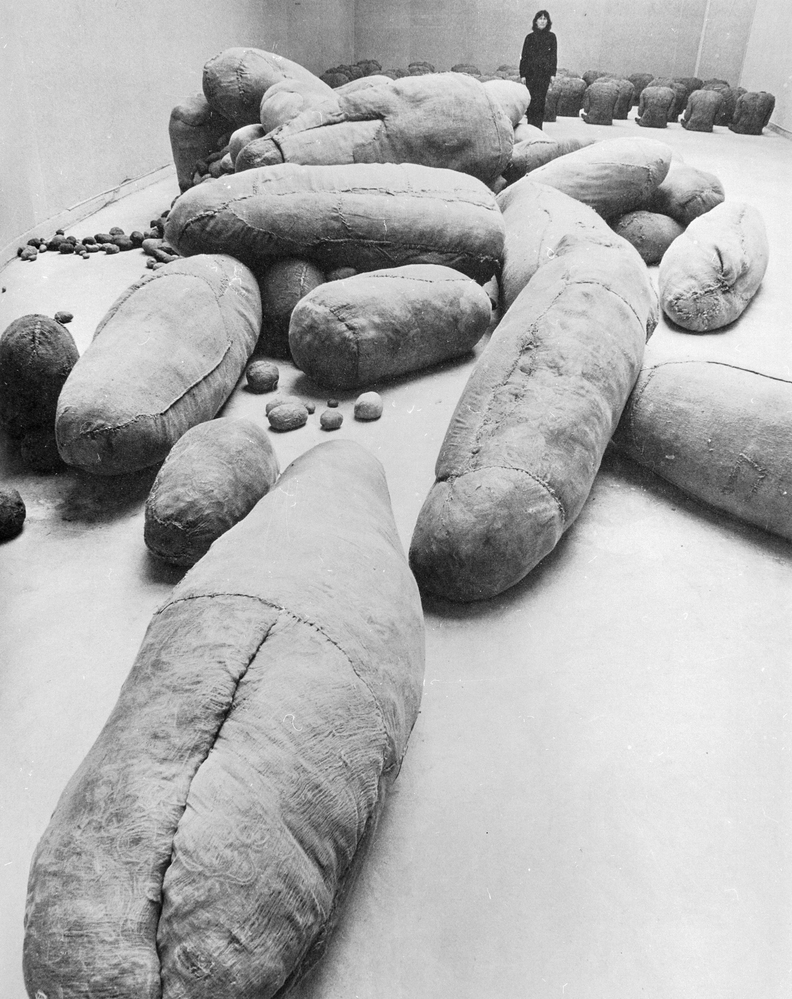 Zbiór ten pierwotnie składał się z ponad sześciuset sztuk i w takiej wersji pokazywany był po raz pierwszy w Pawilonie Polskim podczas 39. edycji Biennale w Wenecji w 1980 roku. W roku 1982 - uzupełniony o nowe elementy - został zaprezentowany na indywidualnej wystawie Abakanowicz w paryskim Musée d’Art Moderne. Podzielony wtórnie przez artystkę trafił następnie do dwóch muzealnych kolekcji: Muzeum Narodowego we Wrocławiu oraz Tate Gallery w Londynie. Jest on równocześnie częścią obszernego cyklu Alteracje, w skład którego weszły chronologicznie wcześniejsze prace: Głowy (1973-1975), Postacie siedzące (1974-1984), Plecy (1976-1980). Cała ta seria była rezultatem koncepcyjnej pracy Abakanowicz dążącej do zmiany języka rzeźbiarskiego i "zrzucenia stygmatu tkaczki" po dekadzie od wykonania pierwszego abakanu. Tym samym Alteracje stanowiły rodzaj intelektualnego i estetycznego punktu wyjścia dla krystalizującego się na przestrzeni lat 70. rozpoznawalnego stylu jej rzeźb, dobitnie wyrażonego w szarych, zgrupowanych, anonimowych figurach.