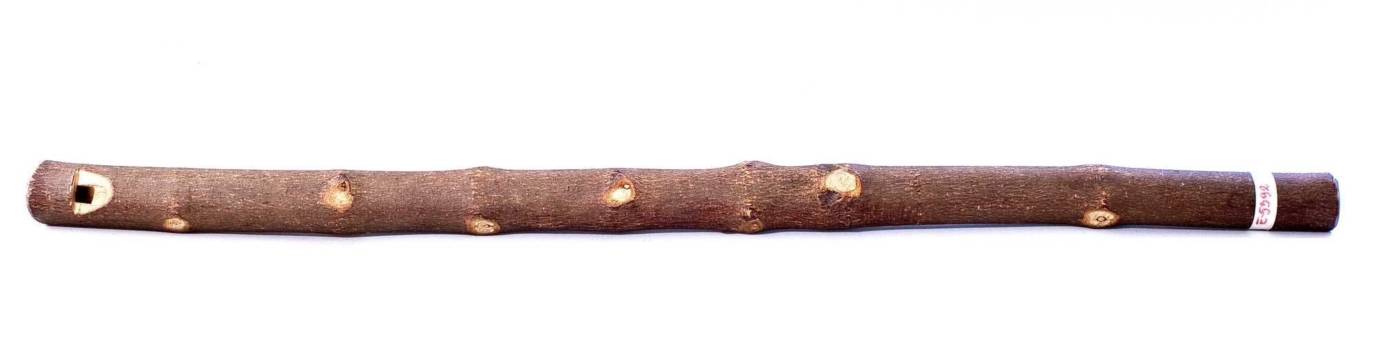 Instrument wykonany z nieokorowanego kija bukowego, bez otworów palcowych. W części przyustnej wycięty jest otwór wargowy.