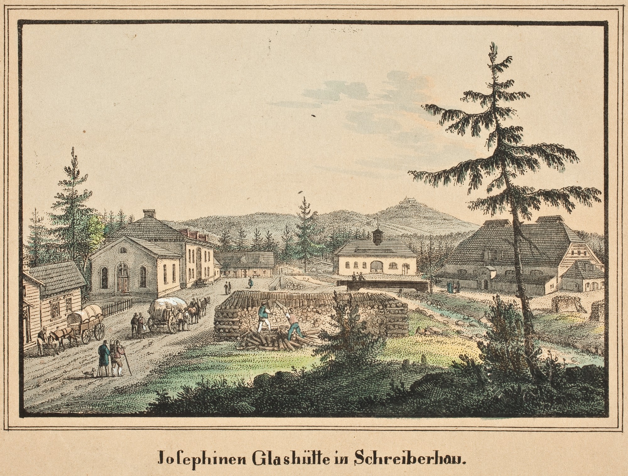 znającego nawet zwyczajne huty szklarza". Zwiedzanie tej atrakcji również chętnie upamiętniano, kupując wydawane w dużych nakładach litografie, pochodzące