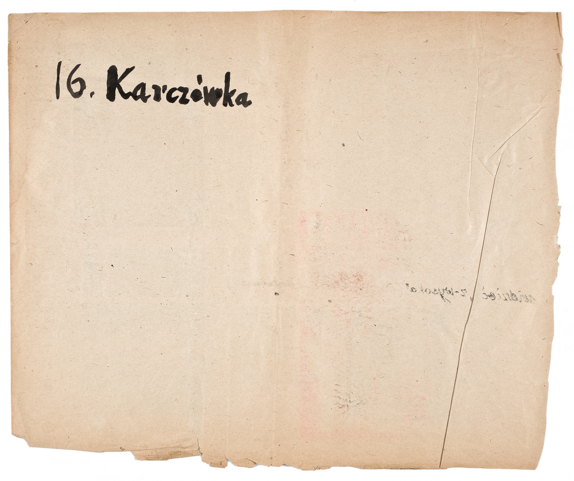 Ołówkiem, pod rysunkiem z widokiem Karczówki: Karczówka k. Kielc. Rysowałem ją też w Prowansji. Ta / górka na której miałem "satori" następna w stronę Chęcin, obok mniejsza. / tuszem: widzieć "z wysoka" (ale żmiji wtedy nie dostrzeżesz...); tuszem na odwrocie, l.g.: 16. Karczówka