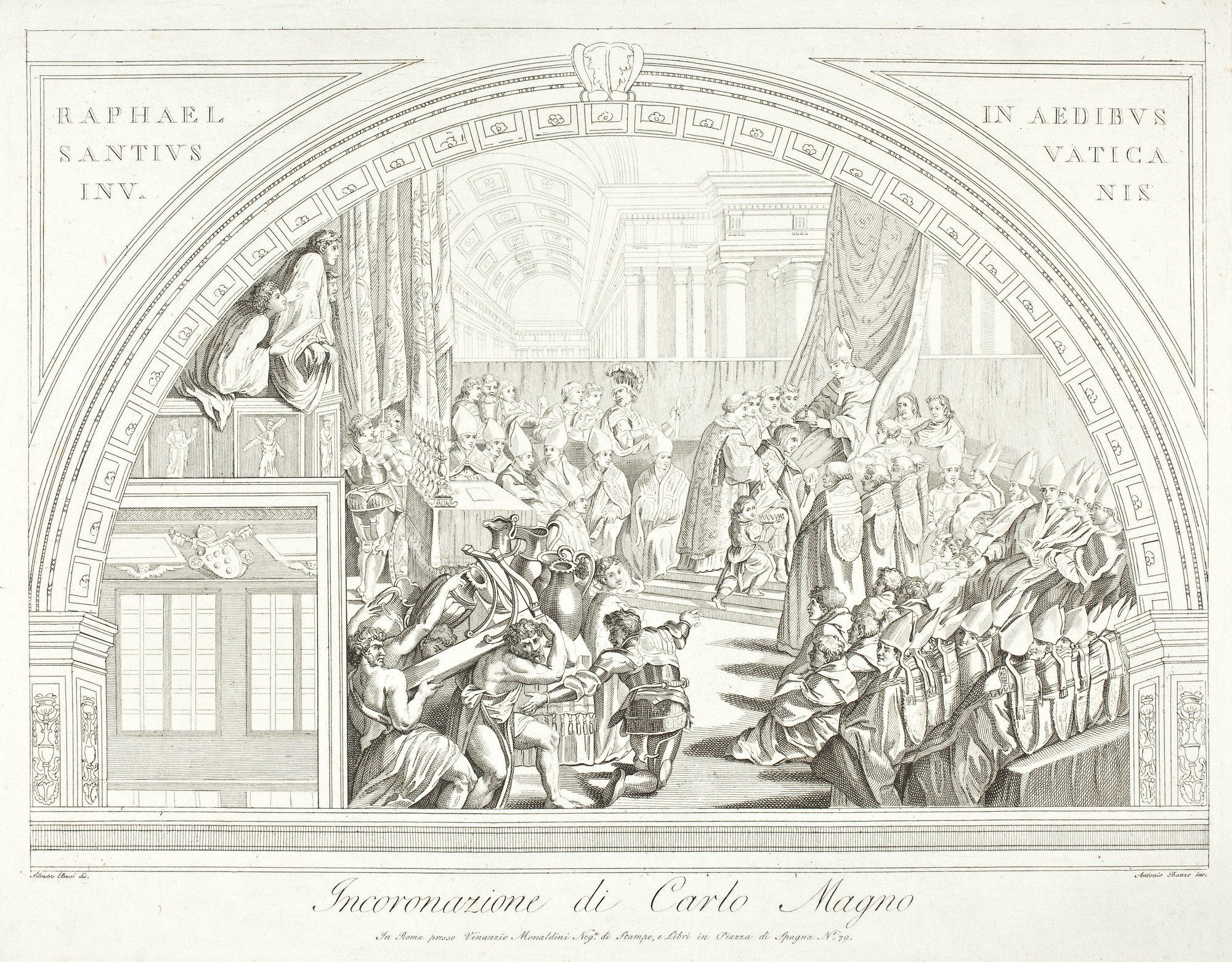 u dołu pośrodku: Incoronazione di Carlo Magno / In Roma presso Venanzio Monaldini Neg.te di Stampe, e Libri in Piazza di Spagna N.o 79.;