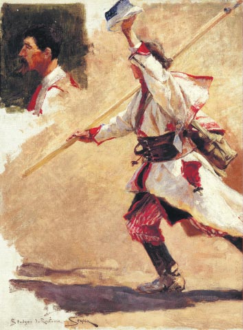 słowa kluczowe: batalistyka  |  kosynier (ikonografia)  |  malarstwo (sztuki plastyczne)  |  malarstwo polskie  |  mężczyzna