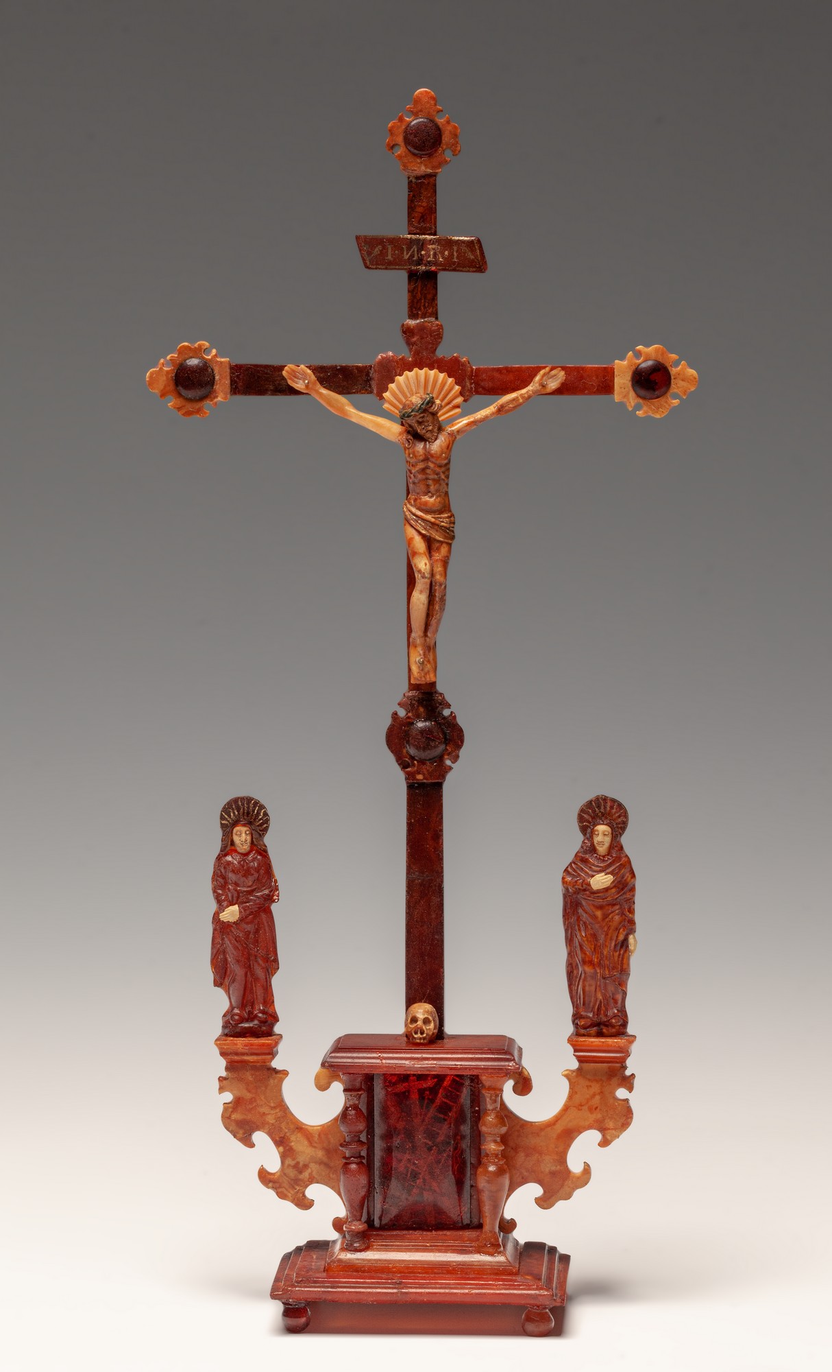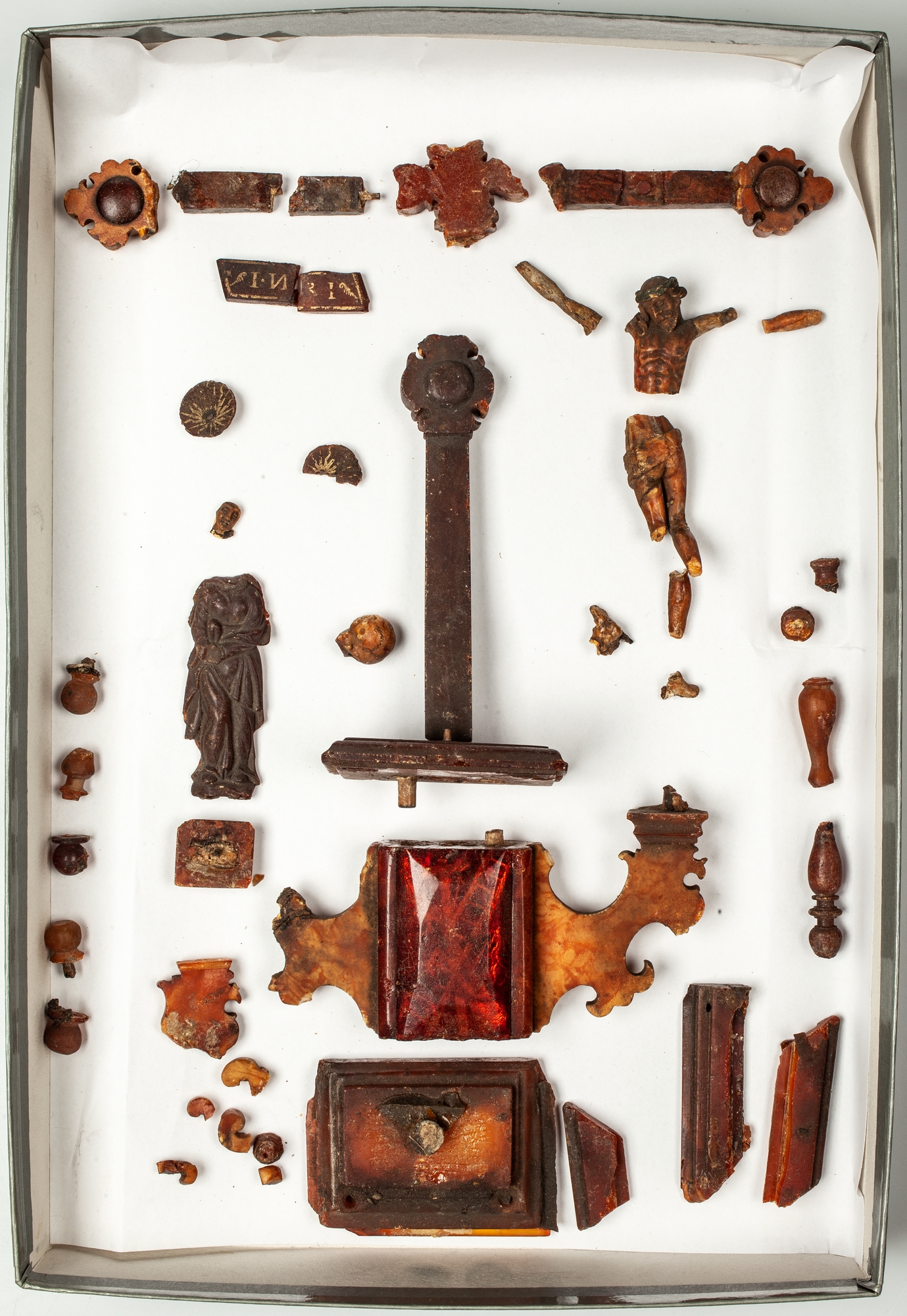 Bursztynowy krucyfiks do zbiorów Muzeum Państwowego we Wrocławiu (obecnie Muzeum Narodowe) trafił po II wojnie światowej jako destrukt. Przechowywany był w pudełku w Dziale Variów Galerii Rzemiosł Artystycznych i Kultury Technicznej pod numerem W VI/1, nie będąc wpisany do inwentarza.