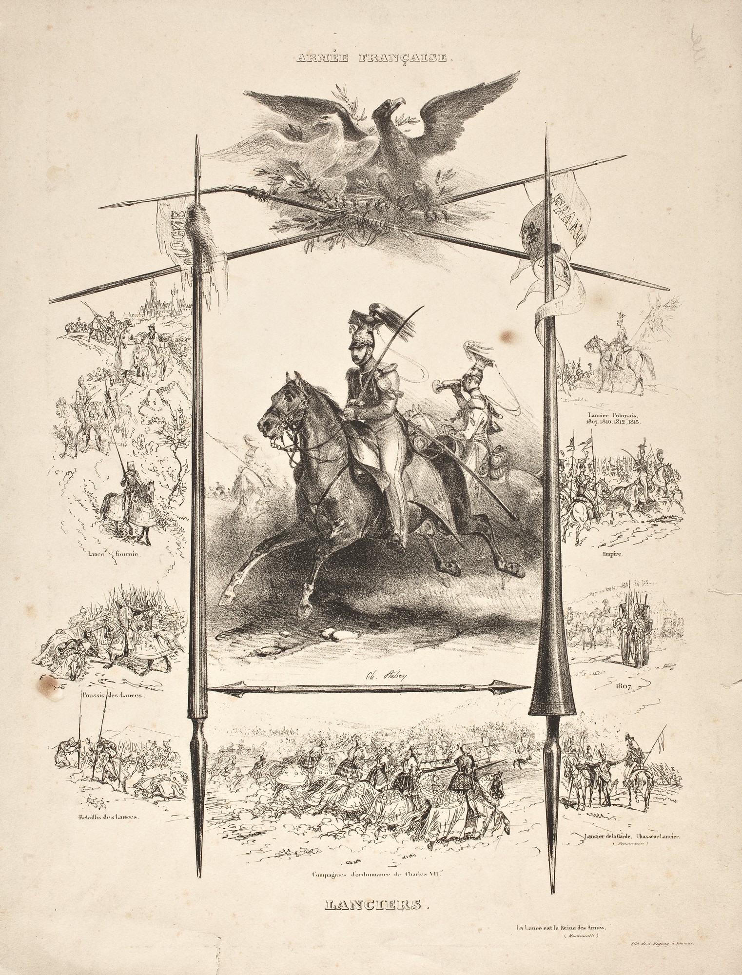 u dołu po prawej: La Lance est la Reine des Armes / (Montecualli) / Lith. de A. Degouy, a (Saumur).