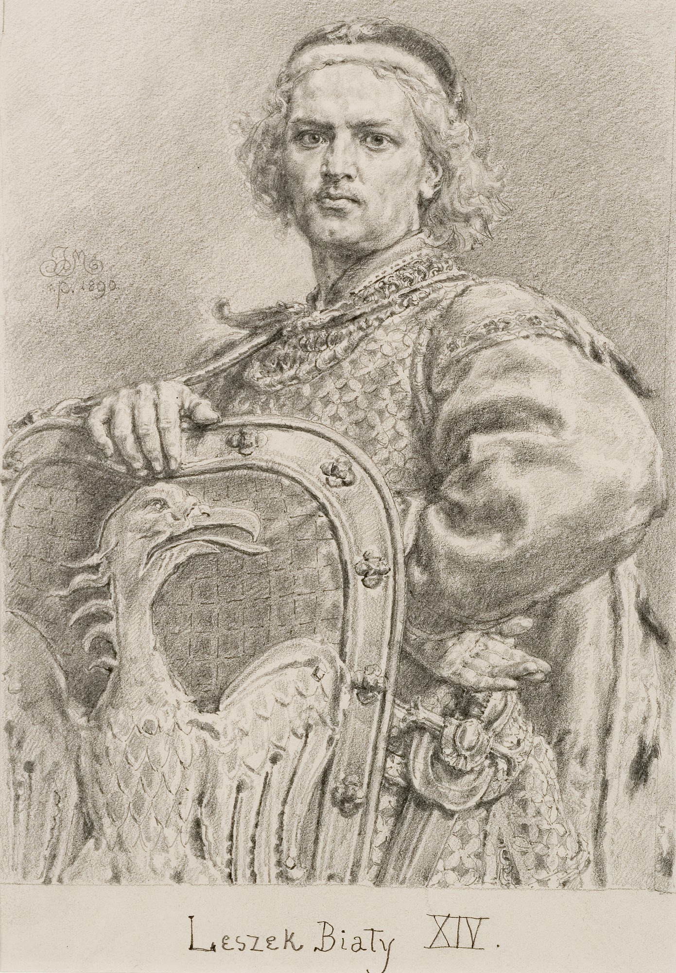 Leszek Biały, syn Kazimierza Sprawiedliwego, książę sandomierski. W 1202 roku władcy udaje się odzyskać tron krakowski. W trakcie swojego panowania Leszek Biały dążył do zawładnięcia Rusią Halicką. Książę, pomimo zwycięstwa podczas wojny z halickim księciem Romanem, wkrótce utracił wszelkie wpływy na Rusi. Koniec rządów Leszka Białego przypada na 1227 rok, kiedy to władca zostaje zabity przez namiestnika Pomorza Świętopełka podczas zjazdu Piastów w Gąsawie.