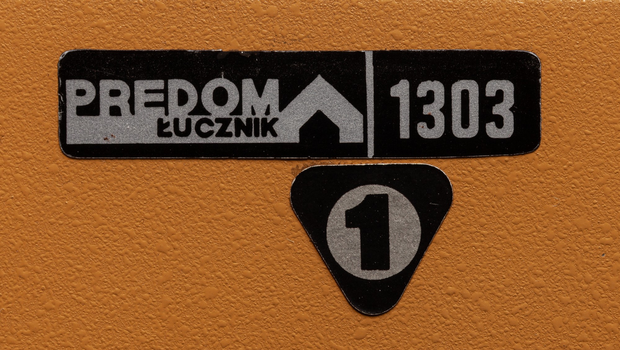 pokrywa, przednia ścianka, naklejka: Predom Łucznik 1303, 1 w trójkącie