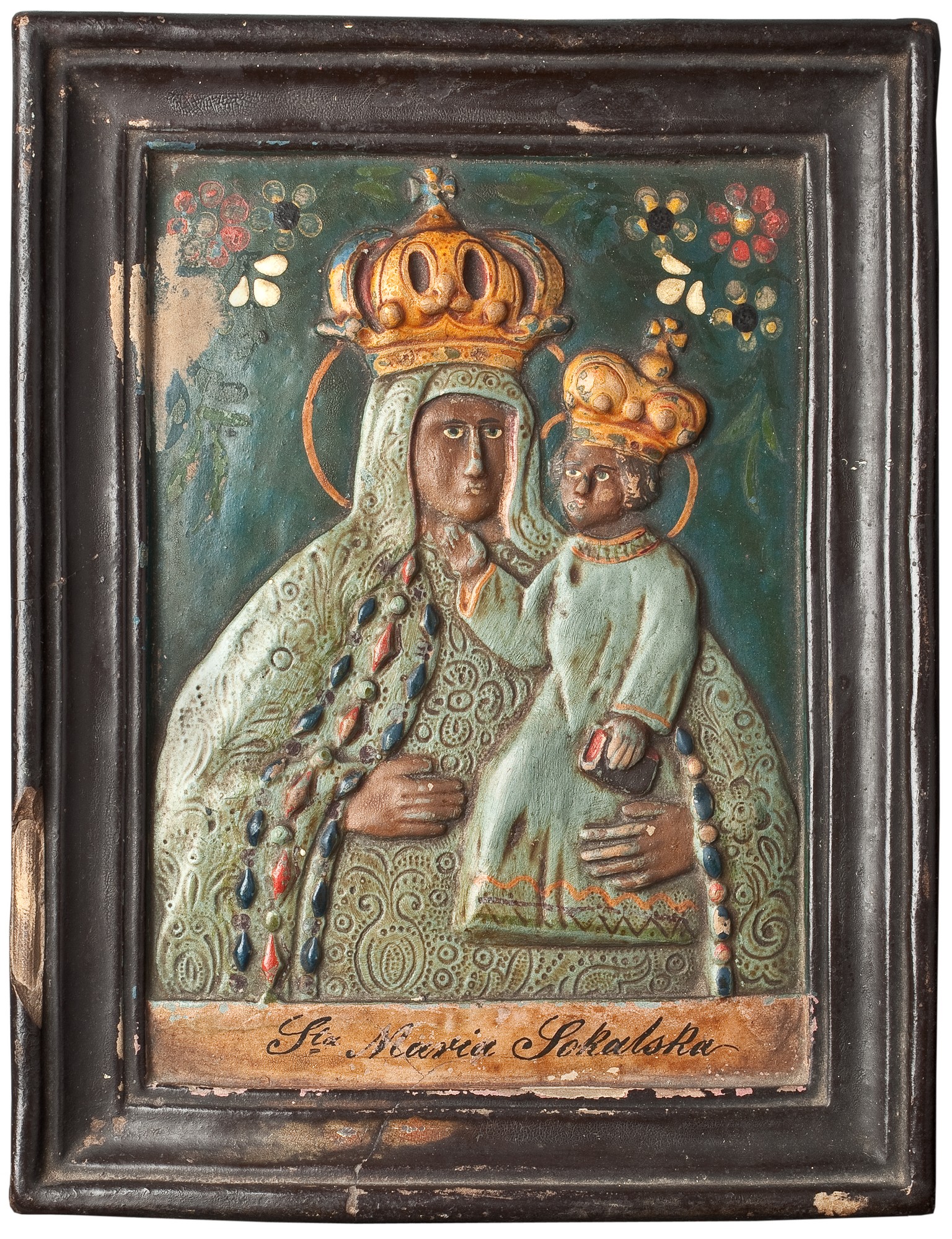 U dołu, na brązowym tle, napis: S. Maria Sokalska.
