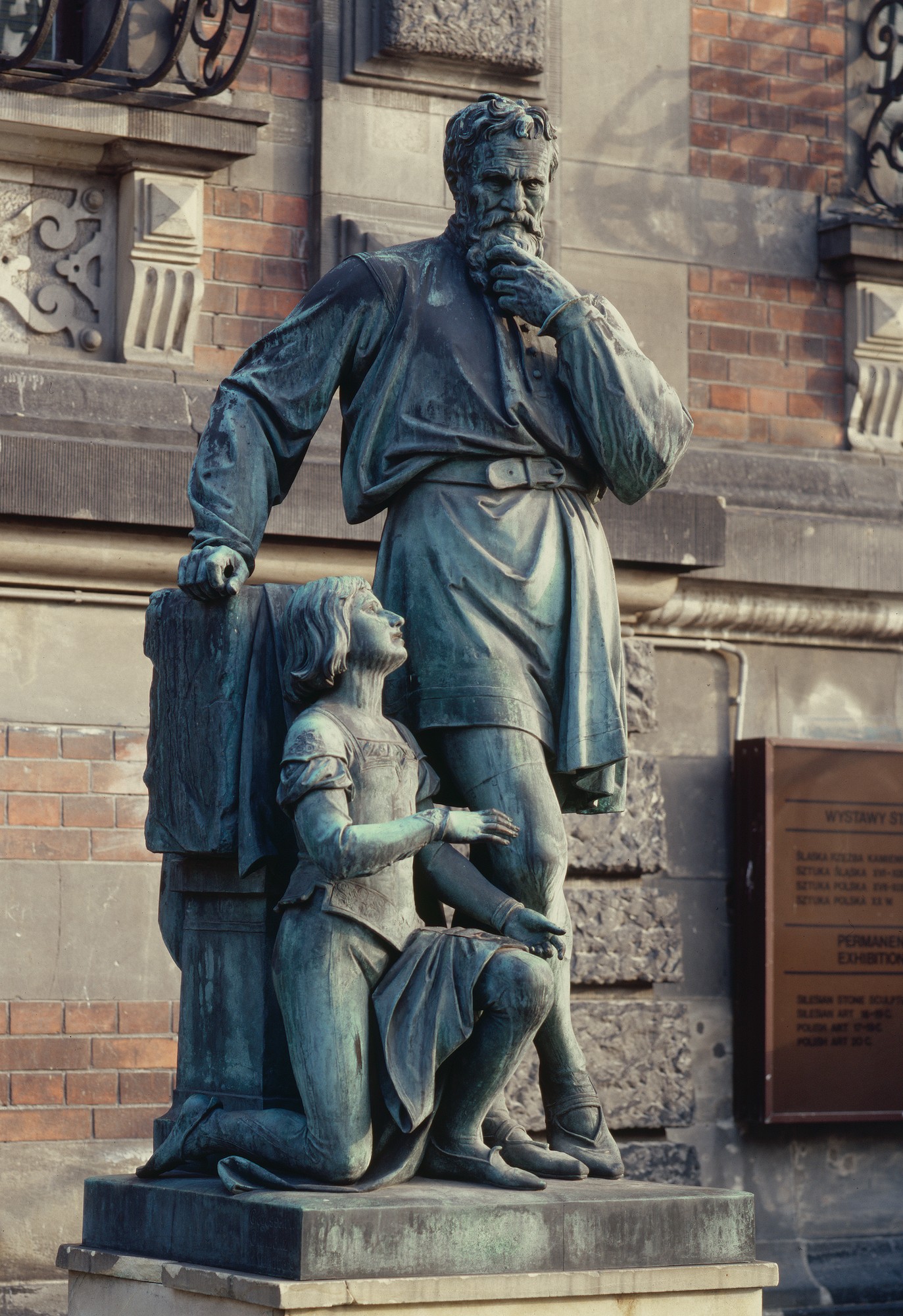 W latach 1875-1880 wzniesiony został, według projektu berlińskiego architekta Otto Ratheya, budynek Schlesisches Museum der bildenden Künste we Wrocławiu. Ważnym elementem budowli były westybul wejściowy i reprezentacyjna klatka schodowa, które wprowadzały odbiorcę w klimat obcowania ze sztuką i przygotowywały go do estetycznej kontemplacji. Służył temu także specjalny program wystroju wnętrza. Twórcy malowideł ściennych, to jest Böcklin, który je zaprojektował oraz Hermann Prell, który je ostatecznie wykonał w 1893 przeciwstawili ideały estetyczne i moralne świata antycznego i chrześcijaństwa. Wystrój rzeźbiarski, autorstwa Hermanna Michaelisa i Roberta Haertela, ukazywał wzorce sztuki renesansowej i odnosił się do rozpowszechnianego w XIX wieku podziału na sztukę renesansu włoskiego uosabianego przez Michała Anioła i renesansu na północ od Alp uosabianego przez Albrechta Dürera. Haertel wykonał także dla wrocławskiego muzeum zewnętrzne alegoryczne figury na fasadzie południowej – personifikacje rzeźby i ceramiki. Do 1945 w archiwum Schlesisches Museum der bildenden Künste we Wrocławiu znajdował się kontrakt z 1878 roku na wykonanie przez Haertela figur Michała Anioła i Dürera. Model pierwszej figury gotowy był już w 1880.