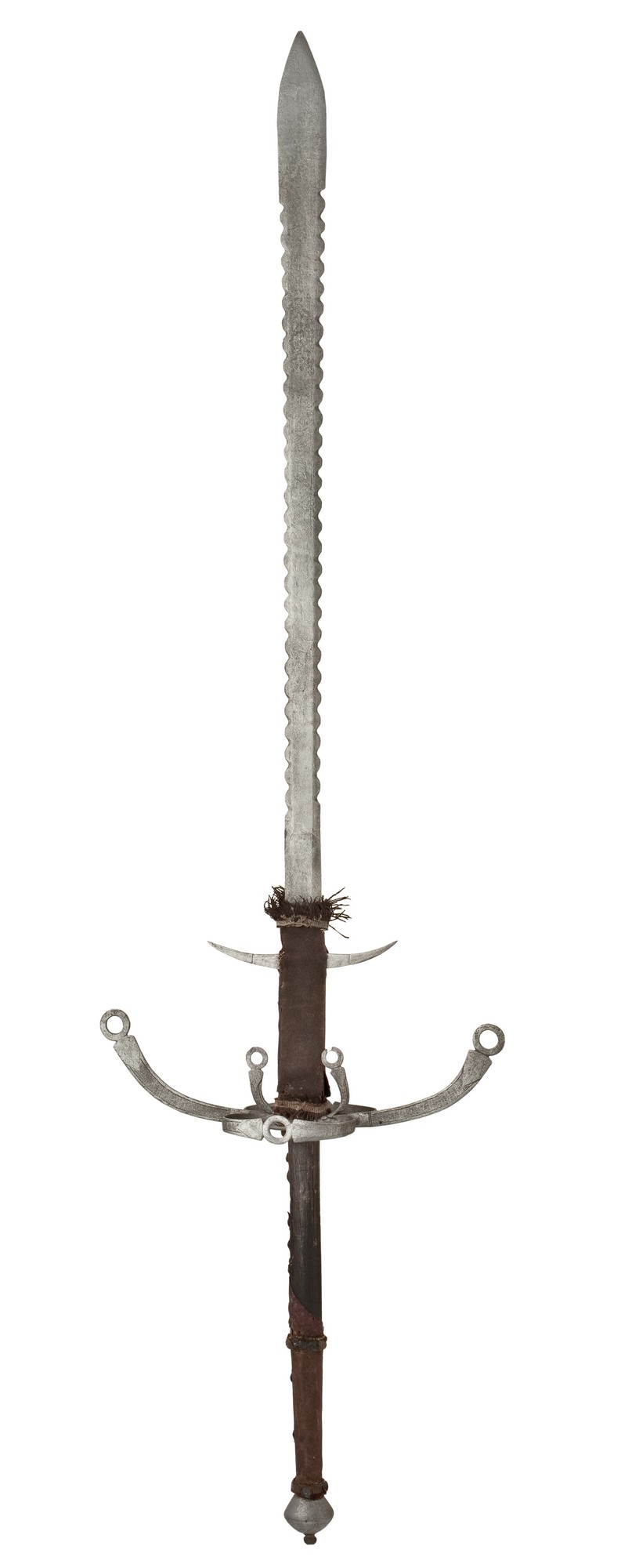 Głownia płomienista, szeroka, gładka. Sztych typu "w karpi język". Ricasso pokryte czerwoną skórą, u dołu i u góry opaski z wełnianymi frędzlami. Haki półksiężycowate, wygięte ku sztychowi.