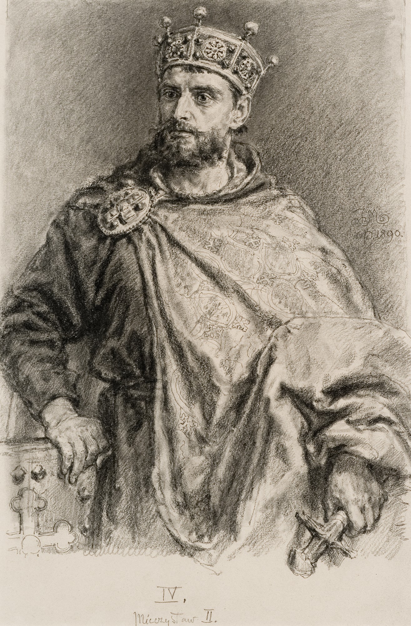 Jan Matejko, tworząc portret władcy, wzorował się na jego wyglądzie z kopii miniatury pochodzącej z mszału Ordo Romanus. Miniatuta ukazuje Matyldę Lotaryńską wręczającą kodeks siedzącemu na tronie Mieszkowi II.