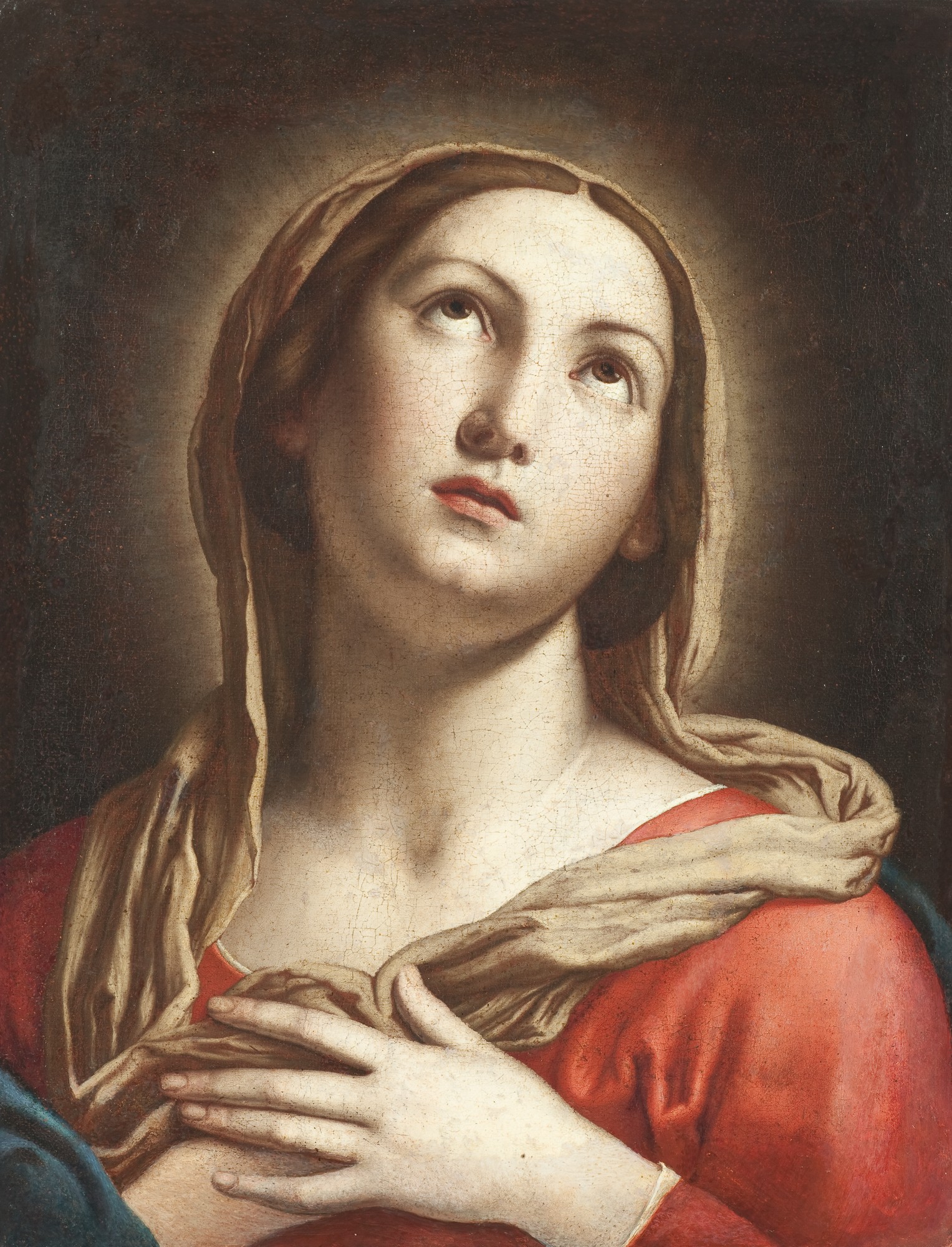 Rzym jako mekka artystów z całej Europy był ośrodkiem krzyżowania się i przenikania rozmaitych kierunków, stylów i mód w sztuce. Giovanni Battista Salvi zwany il Sassoferrato (od miejscowości, z której pochodził), po nauce u ojca współpracował z Domenichinem. Studiował wnikliwie obrazy Rafaela i Carraccich, pielęgnując idee bolońskiego akademizmu przeszczepionego na grunt rzymski. Jego gładkie jak u Dolciego i Reniego, ciepłe, pełne ufności Madonny należały do rozpowszechnionego po dziś dzień poprzez kopie i reprodukcje kanonu, charakteryzującego konserwatywny nurt baroku.