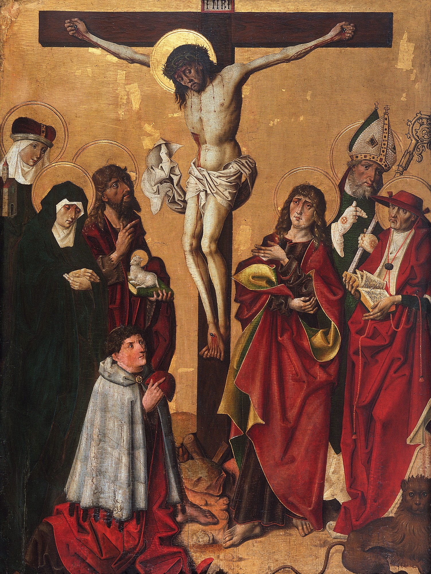 słowa kluczowe: Agnus Dei / Baranek Boży, z krzyżem lub sztandarem (Symbole Chrystusa – zwierzęta; Inne symbole Chrystusa)  |  biskup  |  duchowny (zawód)  |  gotyk  |  Jezus Chrystus  |  kapelusz kardynalski  |  kardynał  |  lew (zwierzę)  |  Maria / Najświętsza Maria Panna  |  mitra / infuła  |  pastorał  |  rękawiczka / rękawica  |  składnica niemiecka w Prudniku  |  sztuka śląska  |  Śląskie Muzeum Rzemiosła Artystycznego i Starożytności (Wrocław) / Schlesisches Museum für Kunstgewerbe und Altertümer (Breslau)  |  św. Hieronim ze Strydonu (ok. 347–420)  |  św. Jadwiga  |  św. Jan Chrzciciel  |  św. Jan Ewangelista (apostoł)  |  tematyka religijna  |  tonsura  |  Ukrzyżowanie Chrystusa, sceny poprzedzające śmierć Chrystusa (Pasja Chrystusa; Nowy Testament)