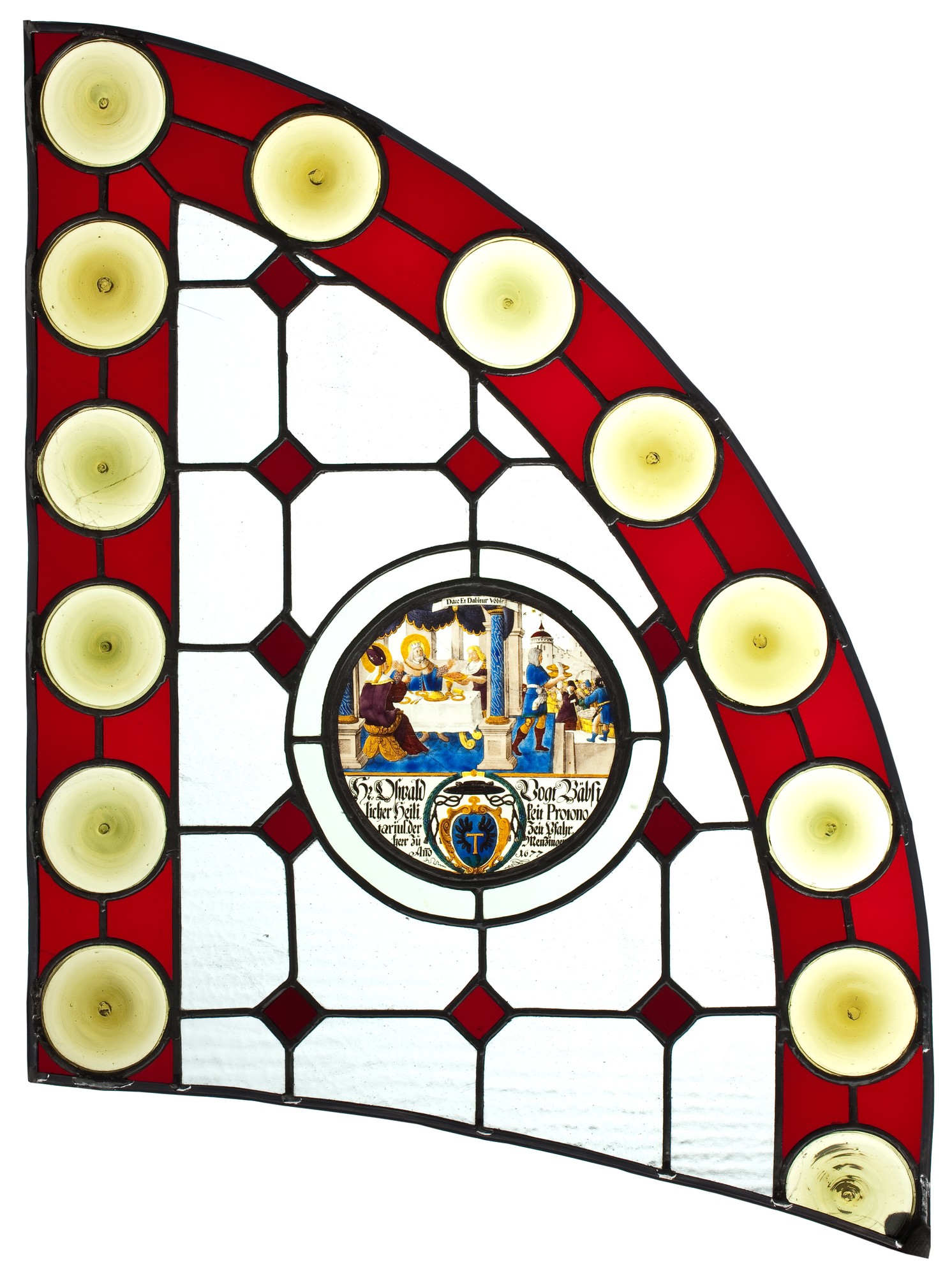 b. Witraż wotywny proboszcza i protonotariusza papieskiego Oswalda Vogta, Szwajcaria, Adam Zumbach, 1677