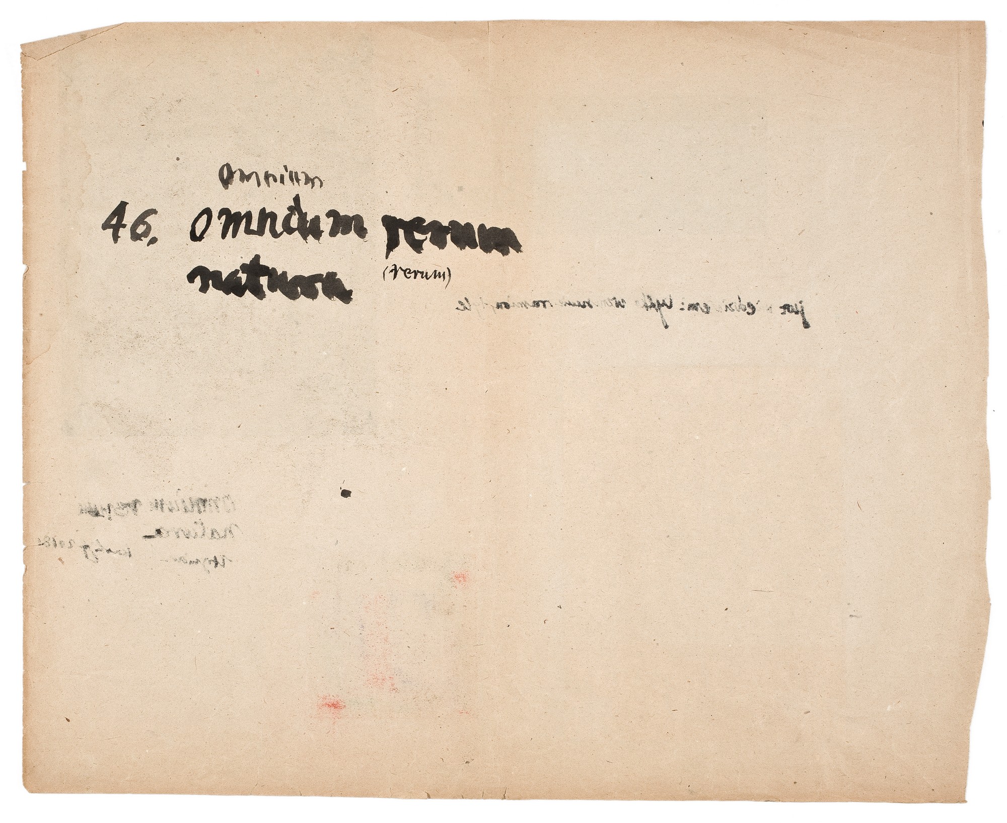 na odwrociu, tuszem, lewy górny róg: omniam / 46 omniam rerum / natura (rerum)