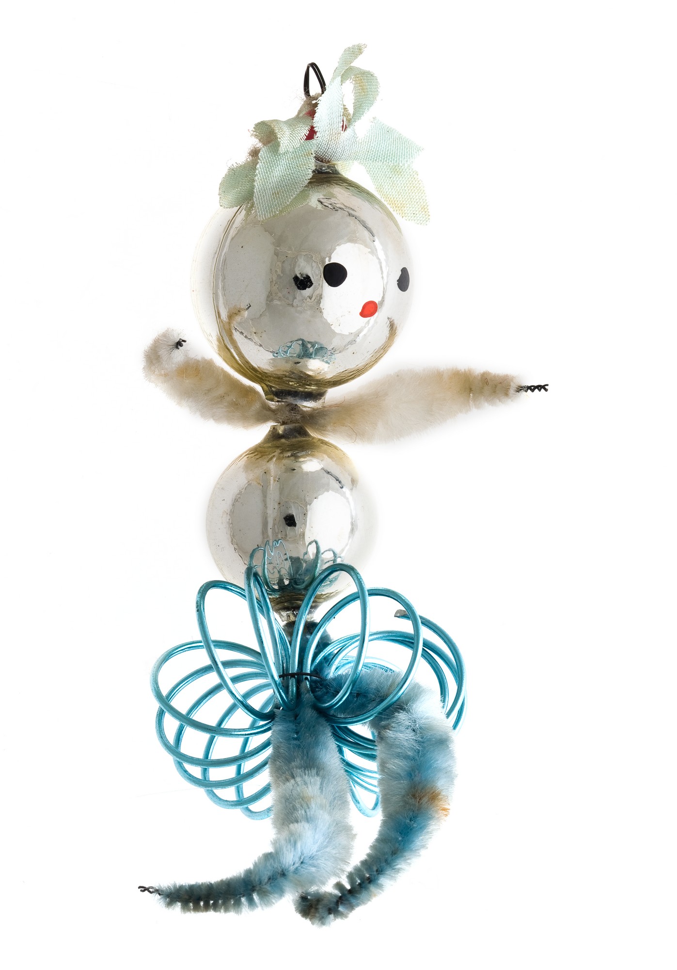 Ozdoba choinkowa w kształcie baletnicy została wykonana z miniaturowych, srebrnych, okrągłych bombek, które pełnią rolę głowy i korpusu. Kończyny górne i dolne baletnicy wykonano z białego i niebieskiego drutu pluszowego, natomiast spódniczka z niebieskiego drutu. Na twarzy baletnicy namalowano czarne oczy oraz czerwone usta, oba w formie kropek.
