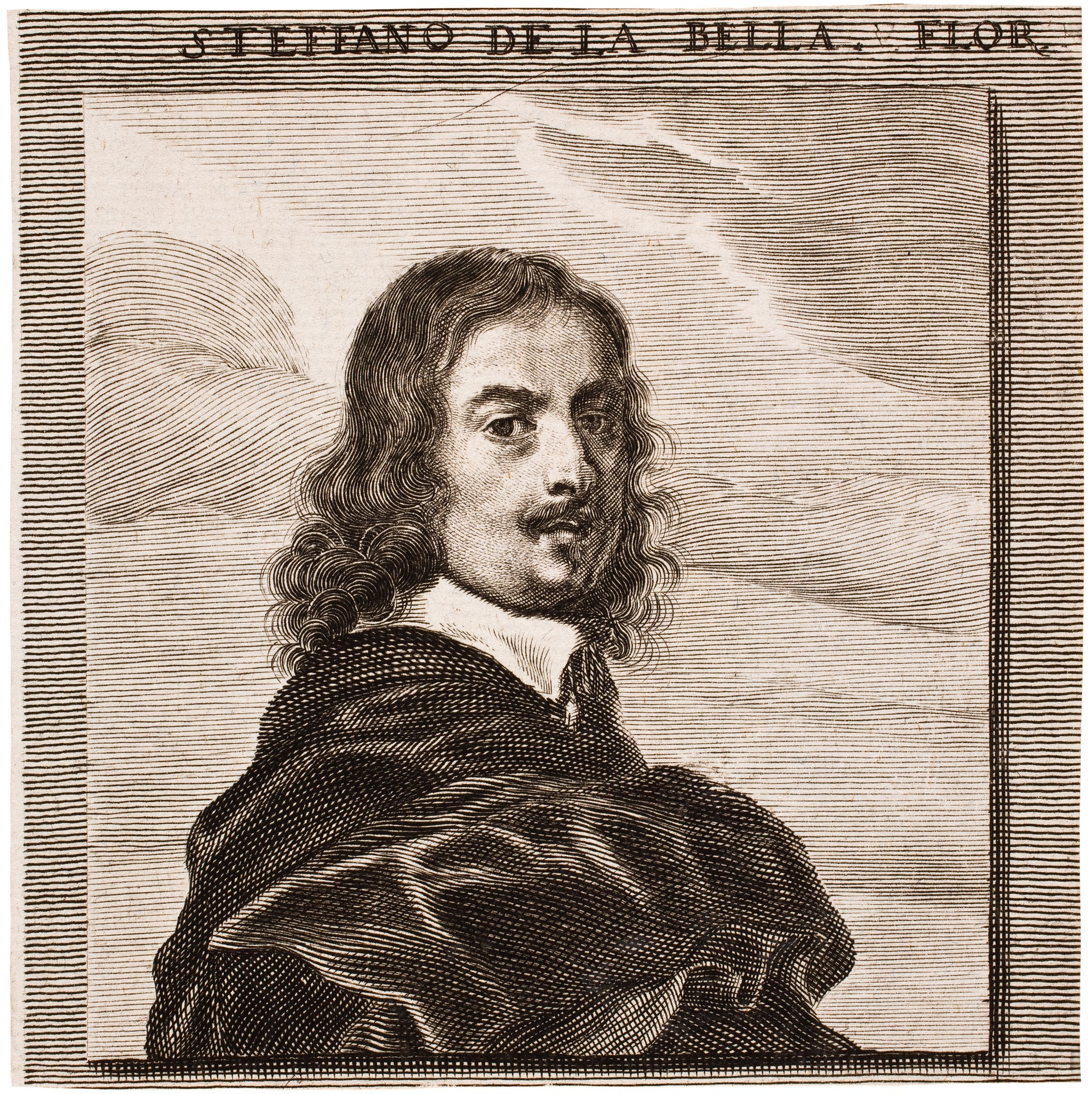 Rycina stanowiła pierwotnie ilustrację krótkiej biografii Stefano della Bella, zamieszczonej w znanym dziele Joachima von Sandrarta pt. "L' Academia Todesca, / della Architectura, Scultura & Pittura: / oder / Teutsche Academie / der Edlen / Bau- Bild- und Mahlerey-Künste [...]", Nürnberg 1675, cz. 2, ks. 3, tab. PP, wszyta po karcie fol. 360. W dziele Sandrarta portret Della Belli ukazany został obok podobizn innych znanych rytowników: Paula Pontiusa, Lucasa Vorstermana, Artusa Quellinusa St., Petera de Jode oraz Lucasa Kiliana. Egzemplarz "Teutsche Academie" dostępny online na stronie projektu: http://ta.sandrart.net/en/facs/590?display=3 [dostęp: 22.11.2023].