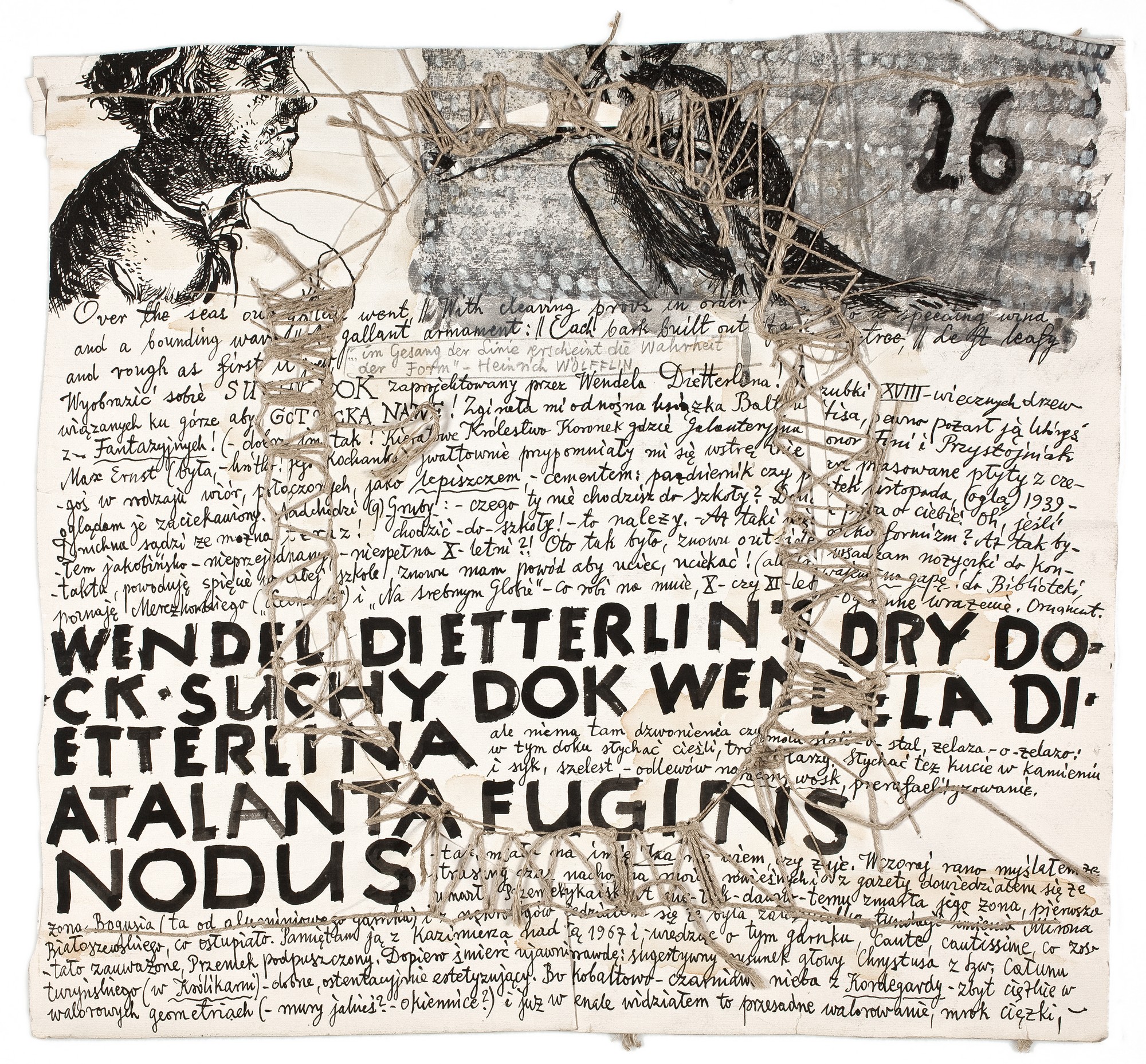 p.d.: avers; odwrocie prawie w całości wypelnione napisami od słów: Over the seas our [...] do: [...] już w Arsenale widziałem to przesadne walorowanie, mrok ciężki,-; pośr.: WENDEL DITTERLIN'S DRY DO- / CK. SUCHY DOK WENDELA DI-TTERLINA / ATALANTA FUGIENS / NODUS