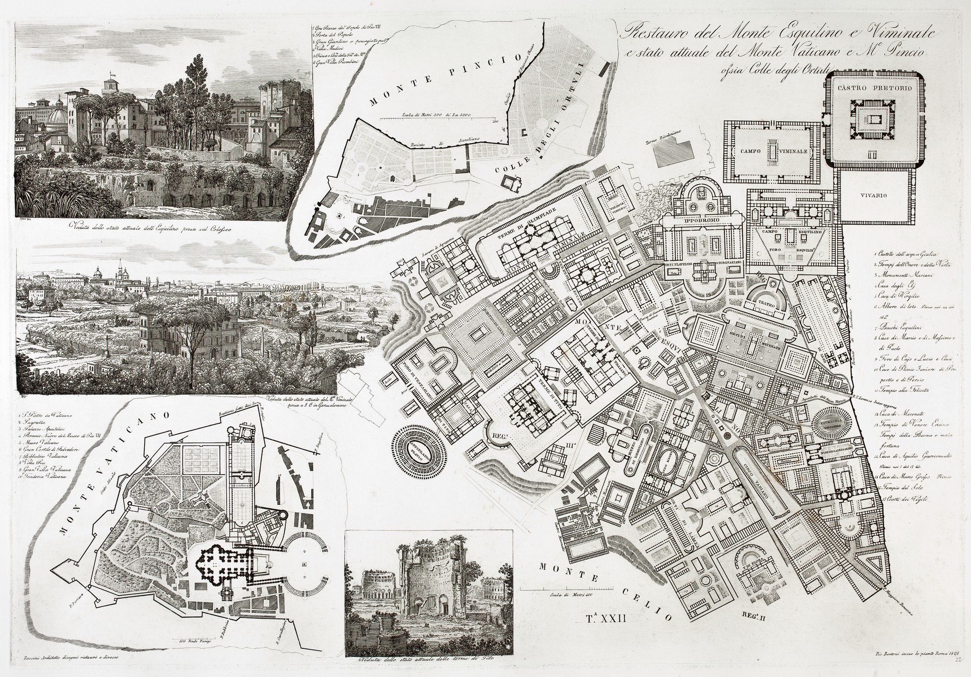 u dołu po prawej: Veduta dello stato attuale del M.te Viminale / Presa a S. C. In Gerusalemme