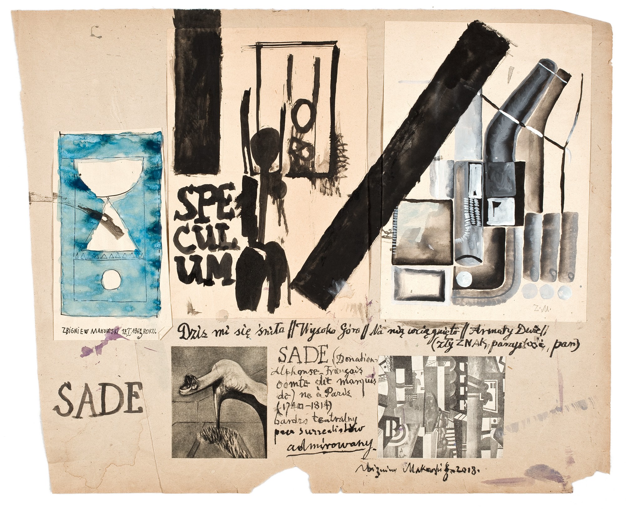 Tuszem, na szarym papierze, p.d.: Zbigniew Makowski f. 2018; na rysunku naklejonym l.g., u dołu: ZBIGNIEW MAKOWSKI 17.I.1963 ROKU; na rysunku naklejonym p.g., w prawym dolnym rogu: Z.M.
