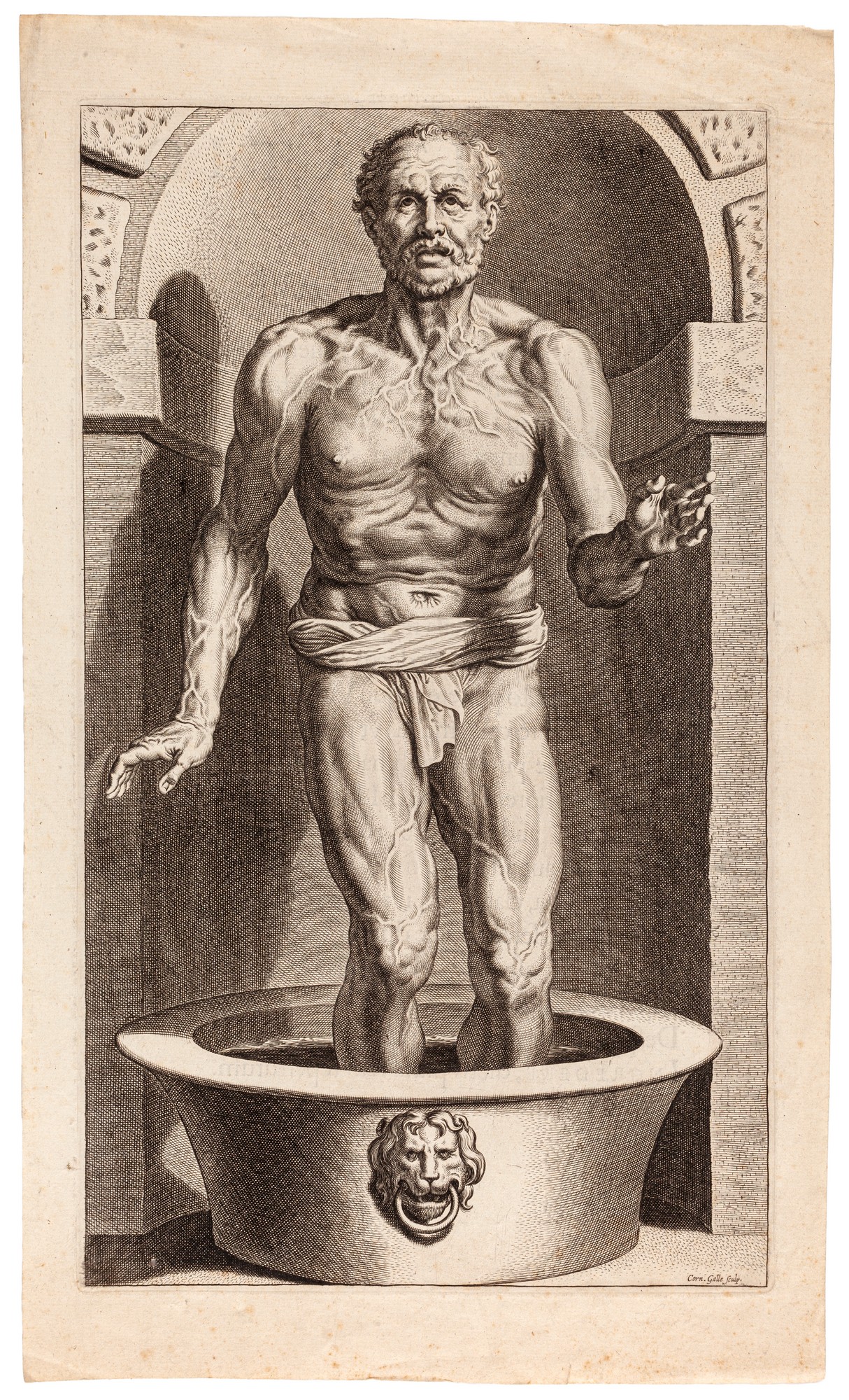 słowa kluczowe: aedicula (część budowli)  |  akt męski  |  filozof (zawód)  |  grafika niderlandzka  |  lwia głowa  |  mężczyzna  |  misa (naczynie)  |  portret męski  |  sztuka flamandzka  |  śmierć