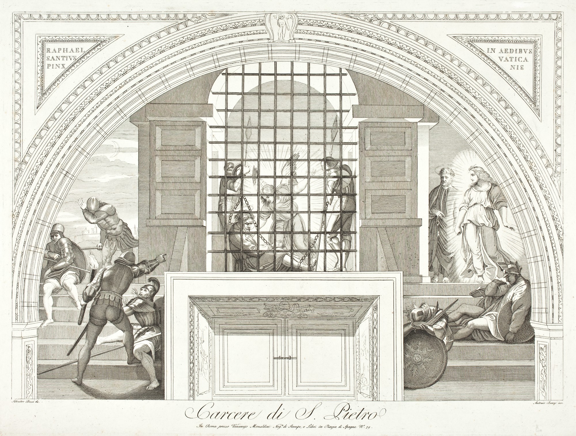 u dołu pośrodku: Carcere di S. Pietro / in Roma presso Venanzio Monaldini Neg.-te di Stampe, e Libri in Piazza di Spagna N.-o 79.