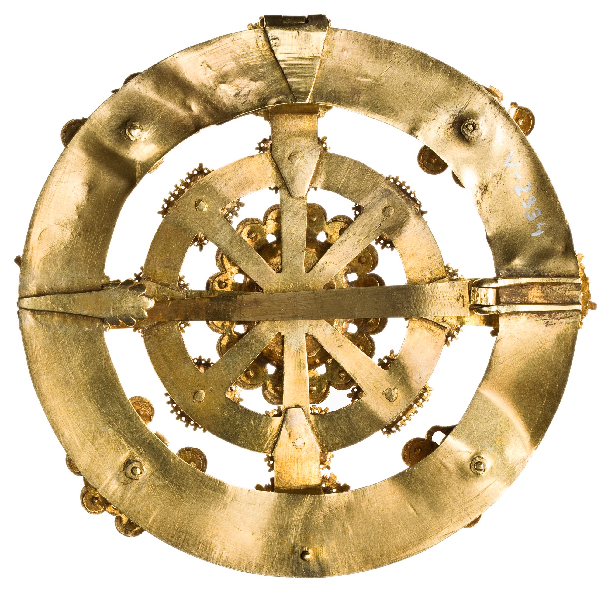 materiał: złoto, granat, perła, szmaragd, chalcedon