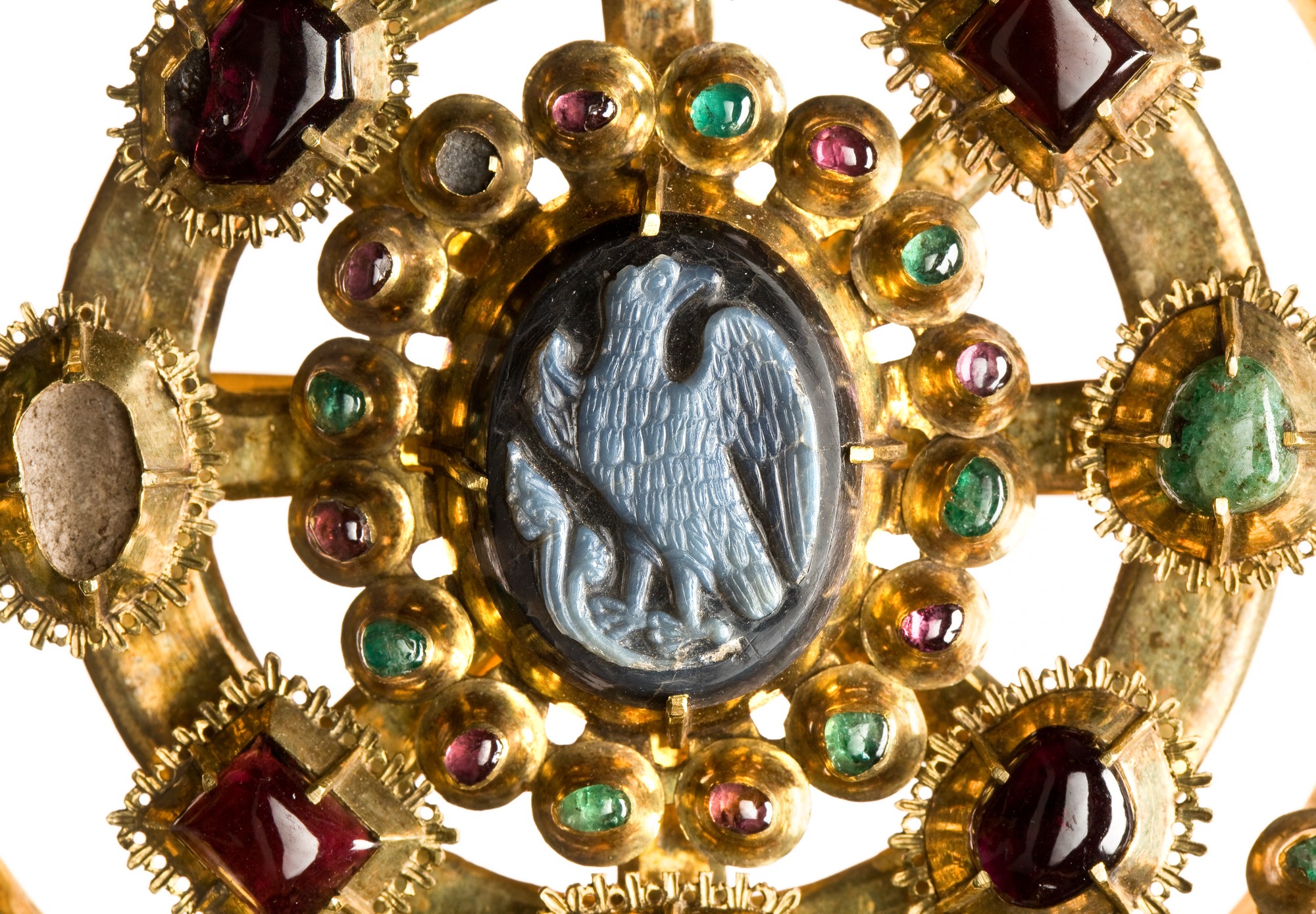 słowa kluczowe: fibula  |  Hohenstauf – dynastia  |  kamea  |  orzeł (ptak)  |  rzemiosło artystyczne (dziedzina działalności)  |  Skarb Średzki  |  złotnictwo